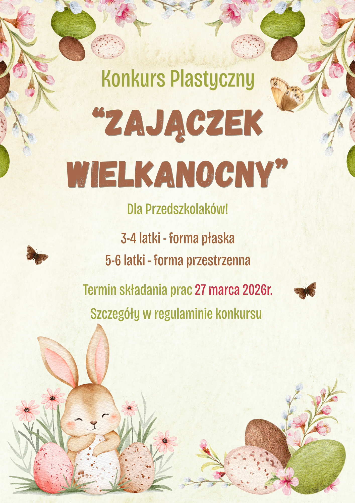 Prace należy dostarczyć do pani Agnieszki Kozłowskiej lub pani Anity Dudek w terminie do dnia 27 marca 2026r.