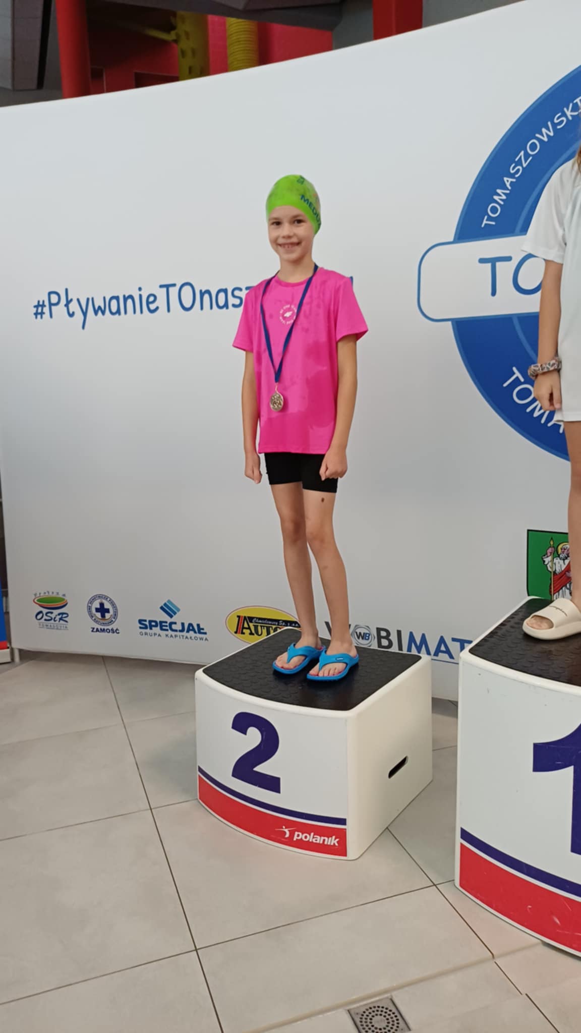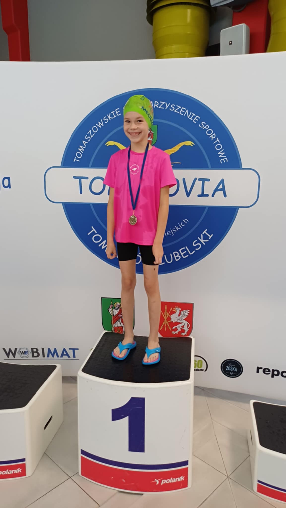 Joanna Kryszczuk uczennica kl. III naszej szkoły zdobyła złoty medal w konkurencji styl klasyczny 25 m i srebrny medal w konkurencji styl dowolny 25 m ścigając się z dziewczynkami w swojej kategorii wiekowej. Zawody miały charakter międzyklubowy i wzięły w nim udział sekcje pływackie i kluby z Tomaszowa Lubelskiego oraz z Biłgoraja. Asia aby wystartować w zawodach całe wakacje wytrwale trenowała pod czujnym okiem instruktorów w Szkółce Pływackiej MEDUZA w Tomaszowie Lubelskim. Gratulujemy i życzymy dalszych sukcesów.